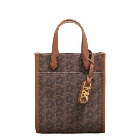 Michael Kors Ladies Crossbody. SKU: 32H3G3GC4B-227. Barcode: 196237343642. Color: Brown/Luggage. Size: 6.75W X 8H X 3D. Michael Kors Gigi Extra-Small Empire Signature Logo Crossbody Bag. The Gigi crossbody bag is a versatile essential, designed in a neutral Empire Signature logo print with contrasting trim to effortlessly complement any outfit. Its sleek, compact silhouette is just the right size for carrying your daily must-haves. Featuring a front slip pocket, three interior card slots, and a snap closure, it also includes a detachable strap for multiple styling options. The handle has an 8.3 drop, and the interior is lined in durable 100% polyester for everyday ease. 80% coated canvas/ 16% polyester/4% cotton.