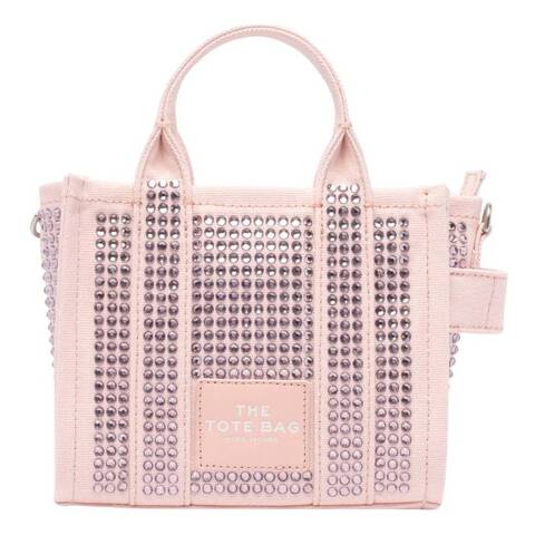 Marc Jacobs Ladies Tote. SKU: 2R3HCR098H01-952. Color: Rose Crystal. Size: 7in L x 4in D x 6in H. Marc Jacobs The Crystal Canvas Crossbody Tote Bag. This mini tote is adorned with all-over crystals on a canvas base designed to fade and soften over time, creating a naturally worn-in look that reflects Marc's personal style. It features a zip closure, sturdy top handles, and a removable, adjustable webbing strap that allows you to wear it hands-free as a crossbody or carry it by hand for versatile styling.