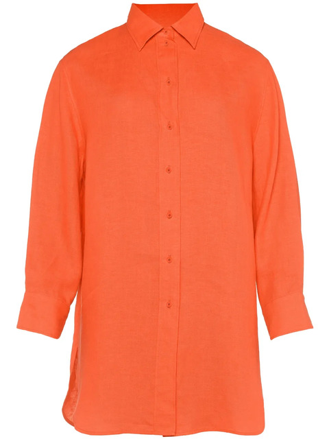 orange linen classic collar long sleeves buttoned cuffs front button fastening side slits straight hem extra-long length