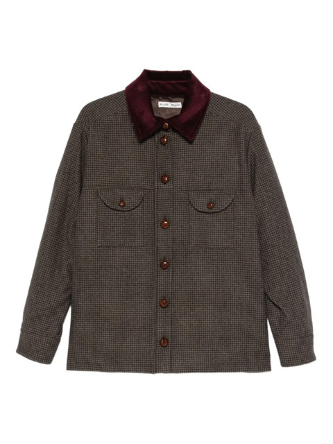 brown button fastening front flap-pockets corduroy collar long sleeves all-over check pattern