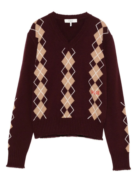Chloe Chloé V-neck argyle-knit jumper - 30880288 (LPN372082)