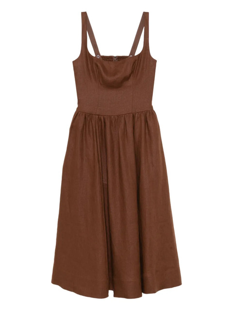 chestnut brown concealed rear hook and zip fastening square neck two side inset pockets