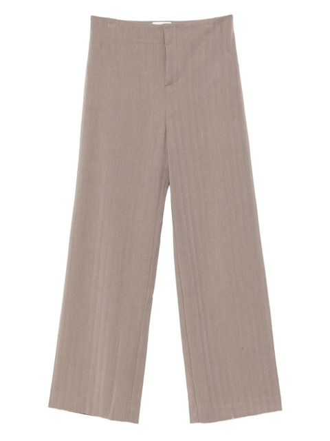light brown concealed front button, hook and zip fastening two rear welt pockets