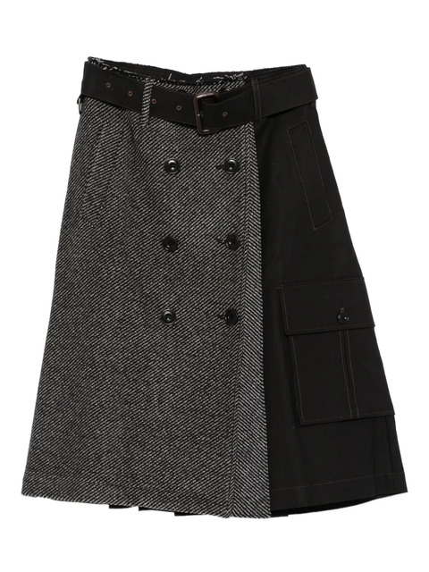 black herringbone pattern waist belt front button fastening side pockets panelled design