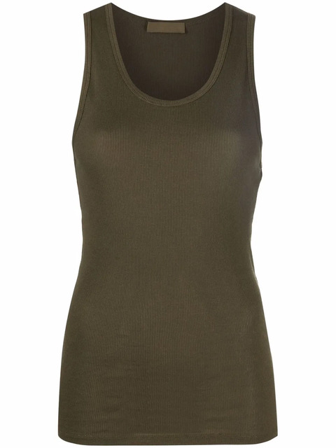 military green cotton ribbed knit scoop neck sleeveless straight hem