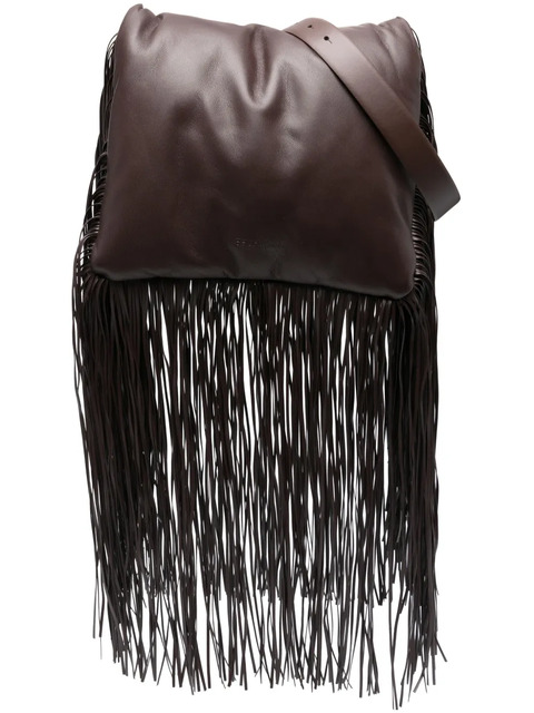 chocolate brown fringed trim nappa leather detachable adjustable shoulder strap concealed press-stud fastening