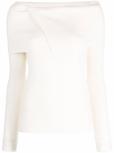 seta white wool-cashmere blend ribbed knit boat neck long sleeves straight hem