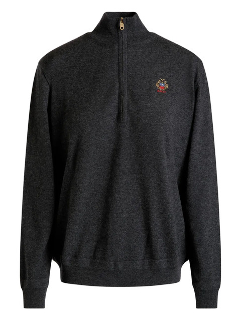 dark grey embroidered quarter-length zip gold-tone hardware long sleeves