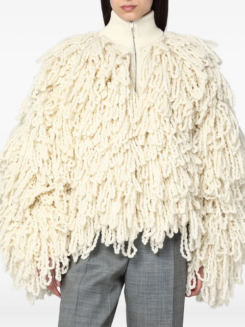 off-white high neck zip fastening long sleeves fringe detail textured knit