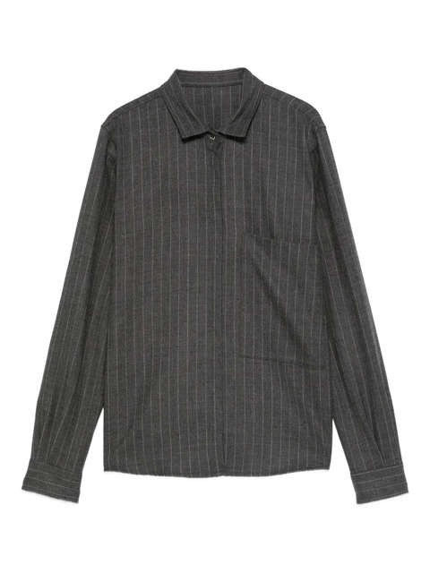 grey stripes pattern patch pocket button fastening long sleeves polo collar