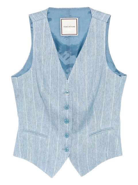 blue front button fastening V-neck two side slit pockets stripe detailing