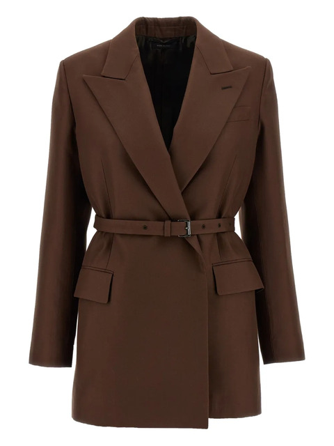brown peak lapels chest pocket flap pockets back vents removable belt