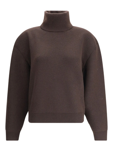 brown turtleneck ribbed knit and cuffs long sleeves straight hem
