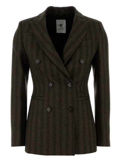 brown and grey striped button fastening notched lapels flap pockets embroidered