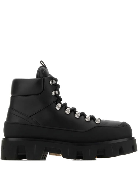 black leather material rubber sole silver-tone eyelets lace-up fastening