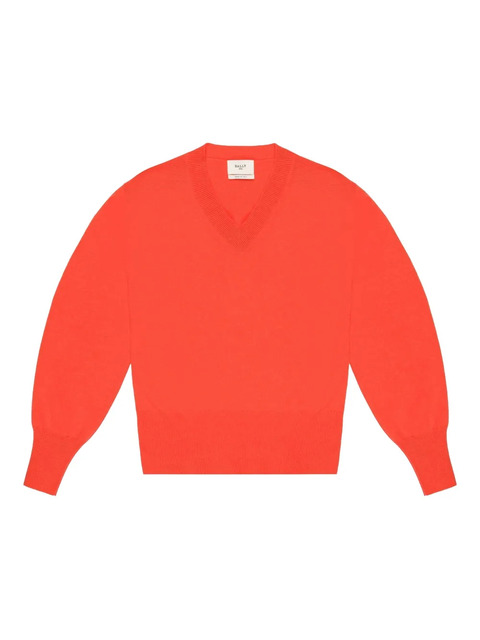 orange V-neck long sleeves ribbed cuffs and hem straight hem
