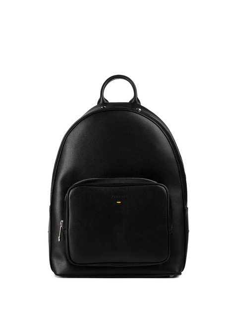 black leather construction top handle front zip pocket adjustable shoulder straps zip fastening