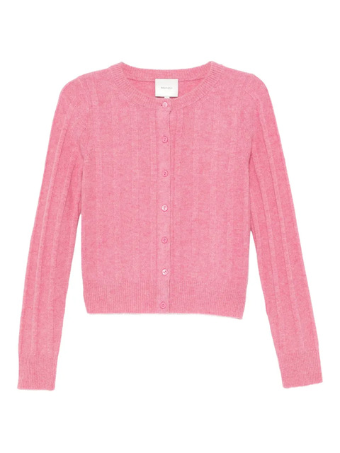 rose pink front button fastening crew neck ribbed cuffs and hem long sleeves