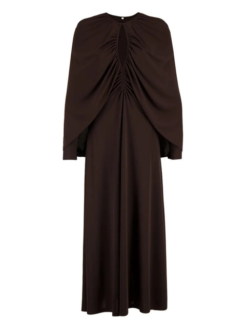 brown gathered detail maxi length long sleeves keyhole detail round neck