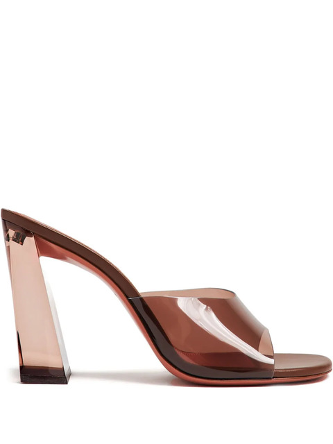 brown backless high block heel round open toe