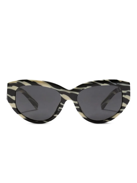 black and beige zebra pattern geometric frame logo hardware tinted lenses curved tips These glasses come with a protective case.