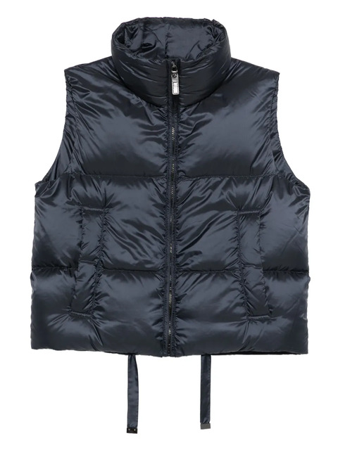 navy blue sleeveless zip fastening high neck front pockets tie detailing