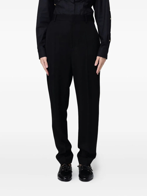 black high-waisted belt loops back welt pocket front pleats concealed fastening