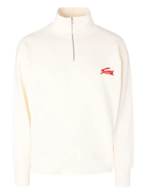 off white high neck zip fastening embroidered motif long sleeves ribbed hem