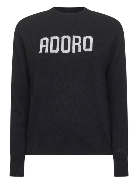 black crew neck long sleeves jacquard lettering ribbed cuffs and hem
