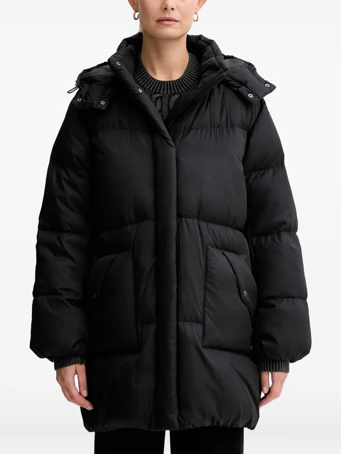 black hooded front pockets concealed zip fastening long sleeves quilted