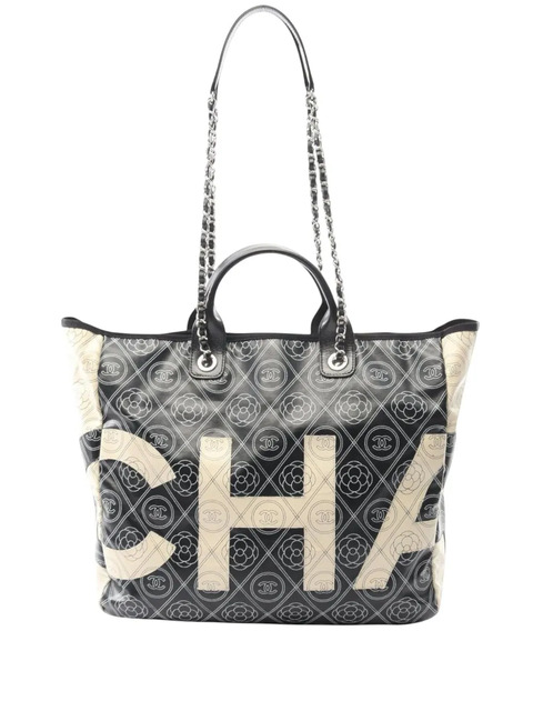 CHANEL Pre-Owned 2018 Large Coated Canvas Camellia Logo Deauville Shopping Tote satchel - 32441221 (LPN373475)