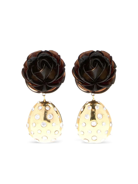 gold-tone rose detail crystal embellishment drop design for pierced ears egg-shape drop detail These earrings come as a pair. Normal everyday use and external agents may reduce the lustre of gemstones and gold surfaces. To maintain, use specific, non-abrasive products specially meant for cleaning jewellery.