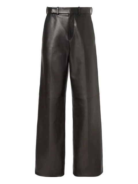 black lambskin leather high waist zip fly side pockets straight leg