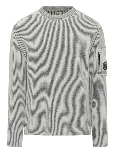 grey striped crew neck long sleeves logo detail C.P. Company suggests removing any detachable accessories before washing.