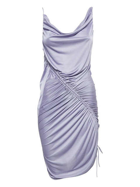light purple cowl neck side drawstring detail draped design fitted silhouette sleeveless Condition: GOOD. This previously owned and used item is in good condition with minimal signs of use. This may include fading of material or plating and scratches.