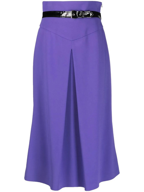 high-waisted belted skirt from MOSCHINO featuring purple, high waist, belted waist, concealed side zip fastening, inverted pleat and flared hem.