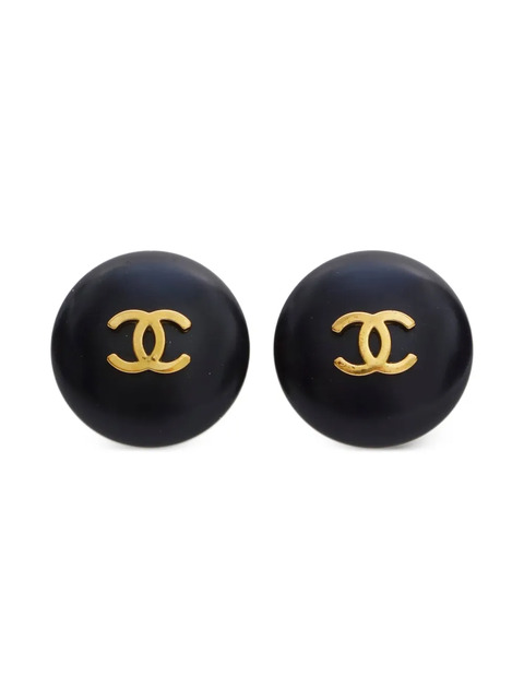 1995 black gold-tone hardware clip-on fastening round shape CC logo These earrings come as a pair.