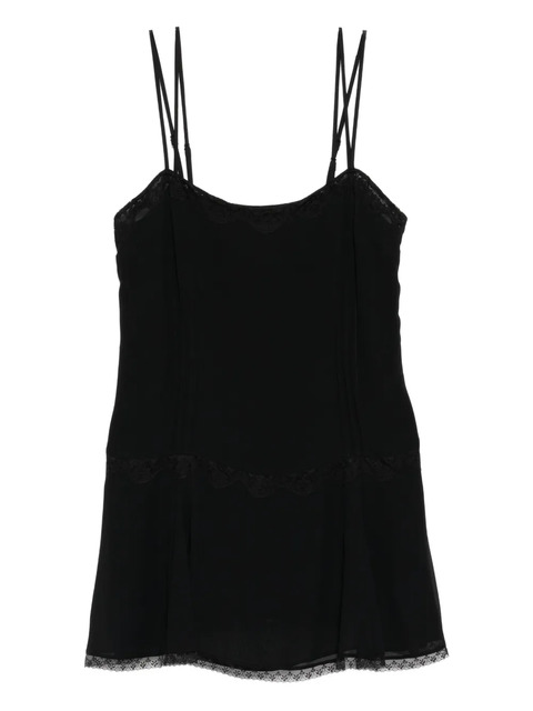 black adjustable spaghetti straps square neck floral-lace detailing