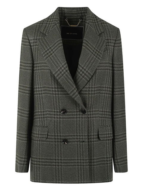 ash grey check pattern double-breasted button fastening notched lapels flap pockets
