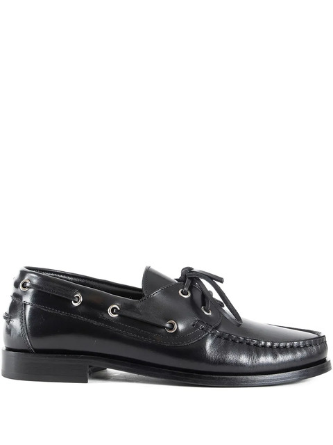 black leather eyelet detail lace-up fastening round toe tonal stitching