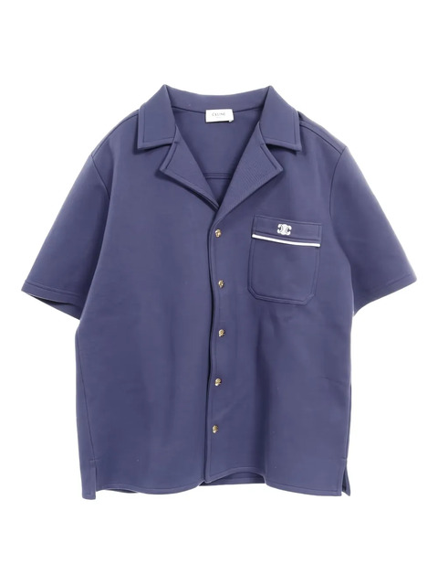 navy blue chest pocket triomphe detail short sleeves button fastening camp collar