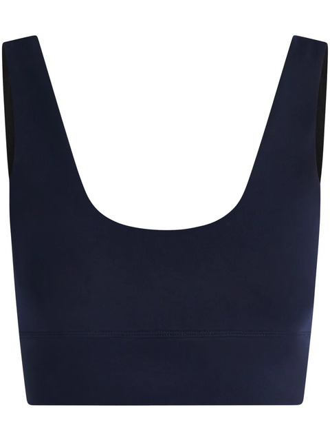 midnight blue stretch-design logo print to the front scoop neck removable built-in cups bra sleeveless scoop back elasticated underband