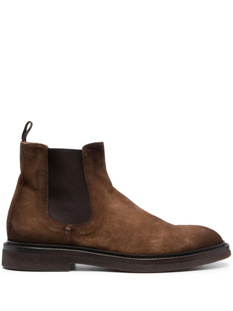 chestnut brown elasticated side panels pull-tab at the heel slip-on style ankle-length branded leather insole rubber sole