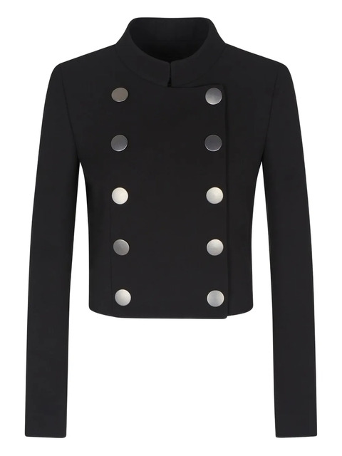 black round neck double-breasted button fastening long sleeves silver-tone hardware