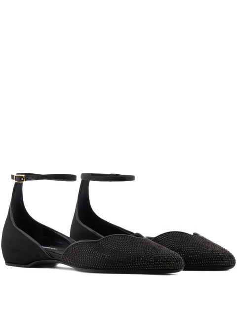 black embellishments ankle strap pointed toe buckle fastening flat sole