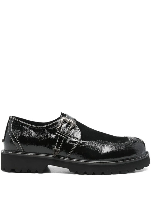 black brogue detailing buckle fastening platform sole rubber lug sole