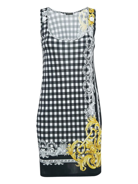 Versace Pre-Owned gingham baroque-print mini dress - 30344663 (LPN374660)
