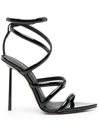black leather patent finish pointed toe open toe multiple toe straps buckle-fastening slingback strap branded footbed 120mm high stiletto heel leather sole