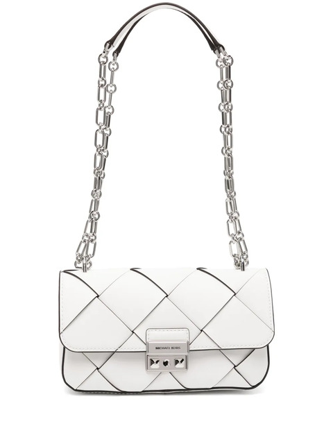 white magnetic fastening chain-link shoulder strap internal slip pocket silver-tone hardware