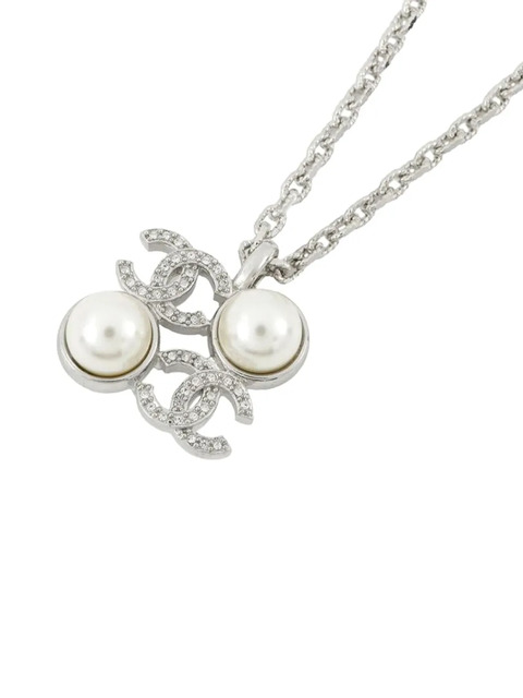 CHANEL Pre-Owned 2025 Silver Plated CC Faux Pearl Rhinestone Pendant Necklace costume necklace - 32459598 (LPN374805)